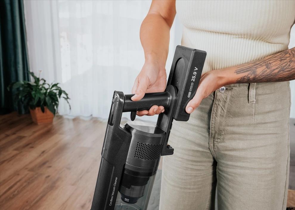 Vysavač je vybaven odnímatelnou ruční jednotkou, na kterou snadno nasadíte praktické příslušenství – malý turbokartáč, hubici na čalounění i štěrbinovou hubici. Turbokartáč je ideální pro úklid čalounění, schodů, těžko dostupných míst i prostor kolem nábytku. Díky rotačním štětinám účinně zachytí zvířecí chlupy, prach a nečistoty i z hlubších vrstev. Hubice na čalounění jemně vyčistí sedačky a polštáře, zatímco štěrbinová hubice se dostane i do úzkých prostor mezi nábytkem nebo v autě.