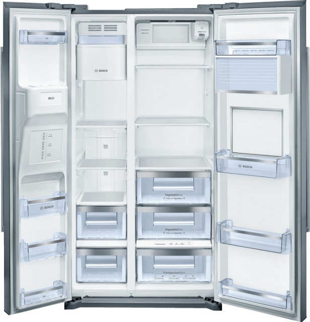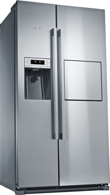 NoFrost americká kombinace Bosch Serie|6 s technologií NoFrost, výdejníkem ledu a pitné vody a HomeBar: umožňuje pohodlný přístup k Vaším nápojům. Další přednosti: energetická třída A+, beznámrazová technologie NoFrost, MultiAirflow systém, technologie FreshSense, funkce superchlazení a supermrazení, výdejník ledu a pitné vody, elektronické dotykové ovládání integrované ve dveřích s digitálním displejem, FreshProtect Box, MultiBox, LED osvětlení, dveře nerez s povrchem AntiFingerPrint s ochranou proti otiskům, akustický signál otevřených/nedovřených dveří, nezávislá regulace teploty v chladicí a mrazicí části.