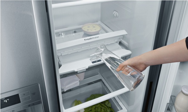 U ledniček Bosch v nerezovém provedení jsou dveře potažené speciální ochrannou vrstvou – antiFingerprint, která omezuje tvorbu otisků prstů na povrchu.
