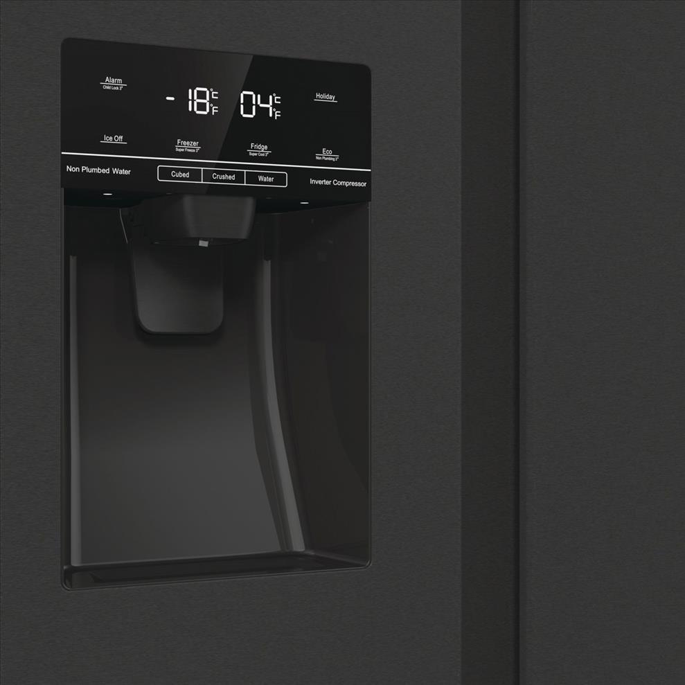Převezměte plnou kontrolu nad lednicí Hisense RS5P535NTFE a upravte vnitřní teplotu nebo aktivujte různé funkce pomocí dotykového LED panelu, který se nachází nad výdejníkem vody. Budete jej tak mít kdykoli na očích v případě, že byste chtěli cokoli upravit.