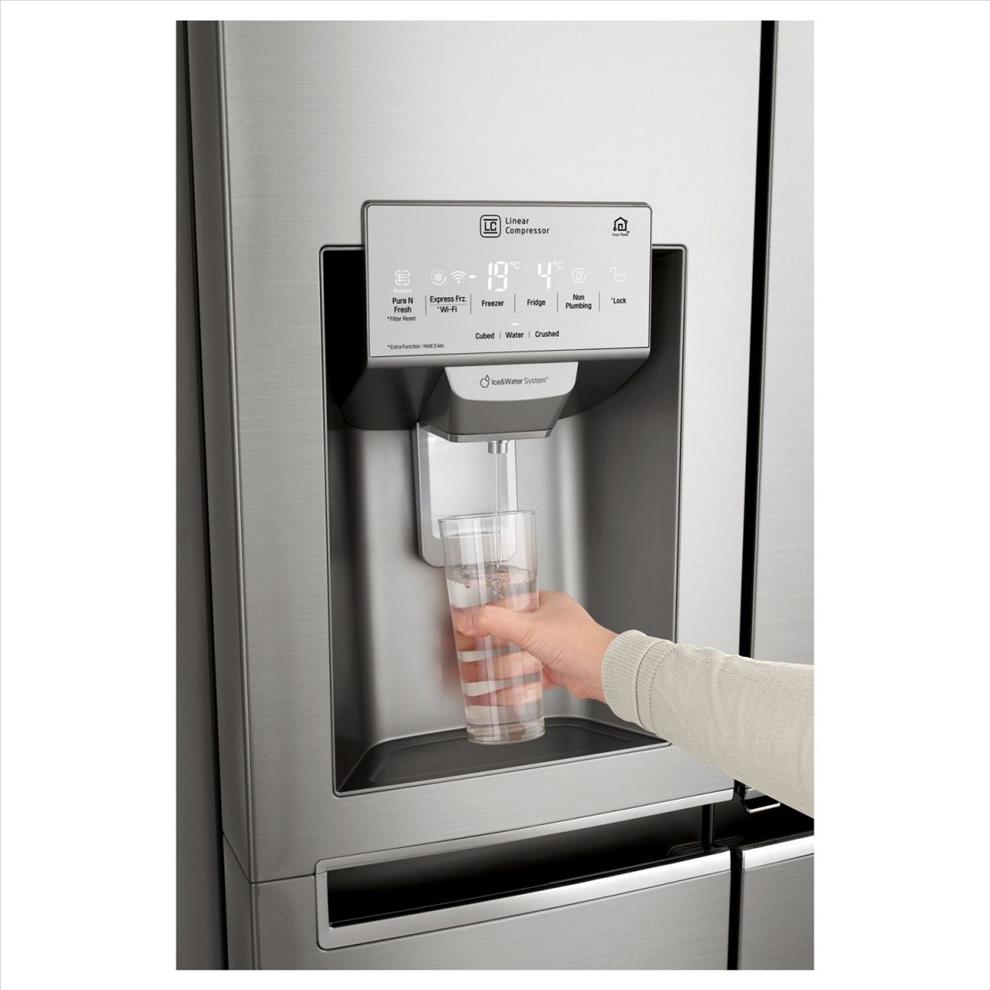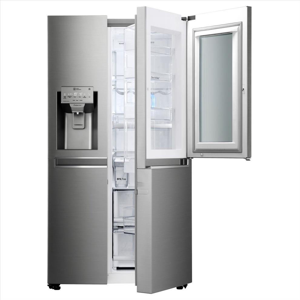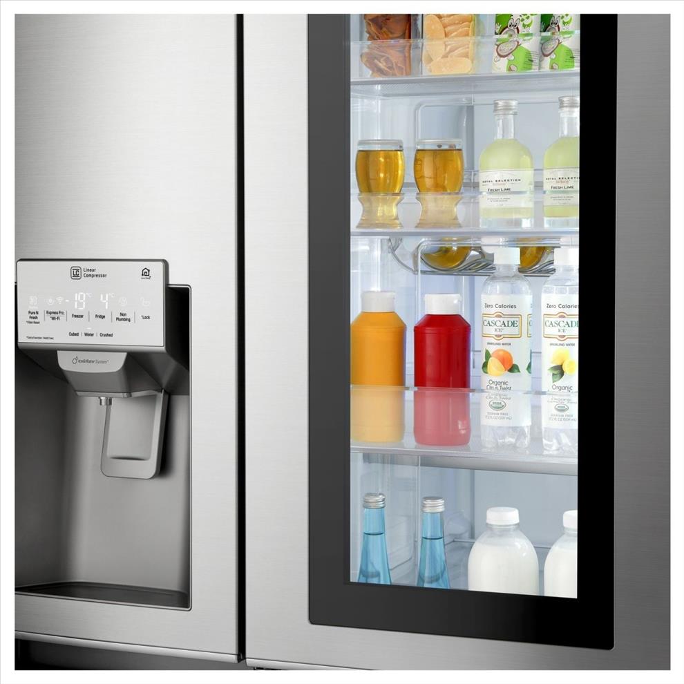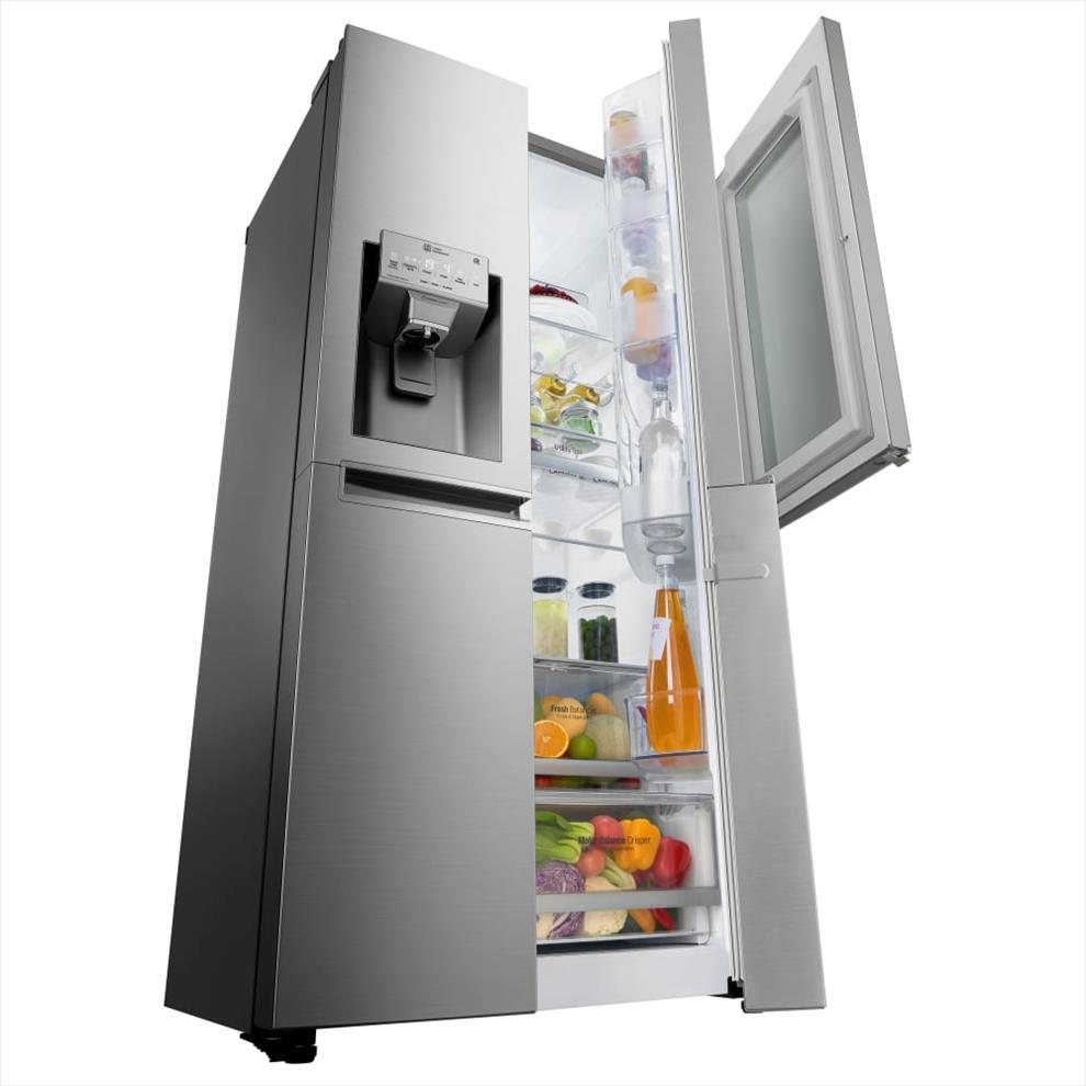 Americká chladnička s dvířky InstaView Door-in-Door™(průhledné, podsvětlené). LG Lineární invertorový kompresor, Nature FRESH chlazení, LG Smart ThinQ - Wi-Fi chytré funkce.