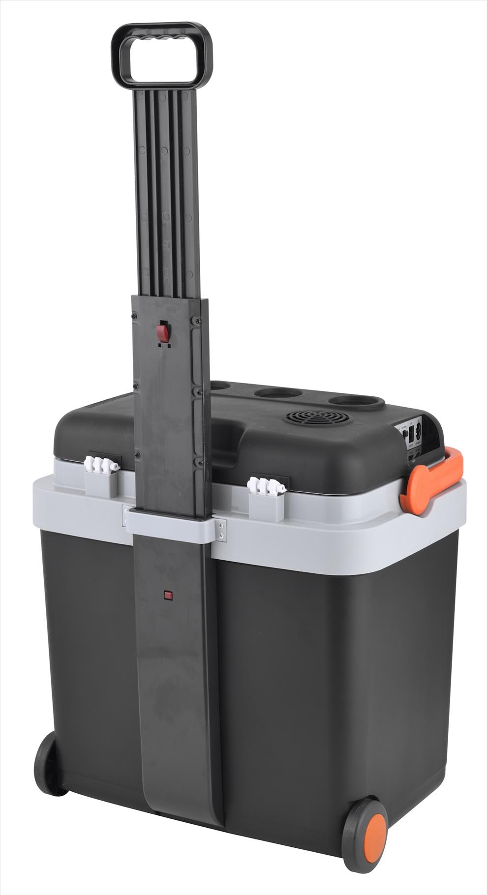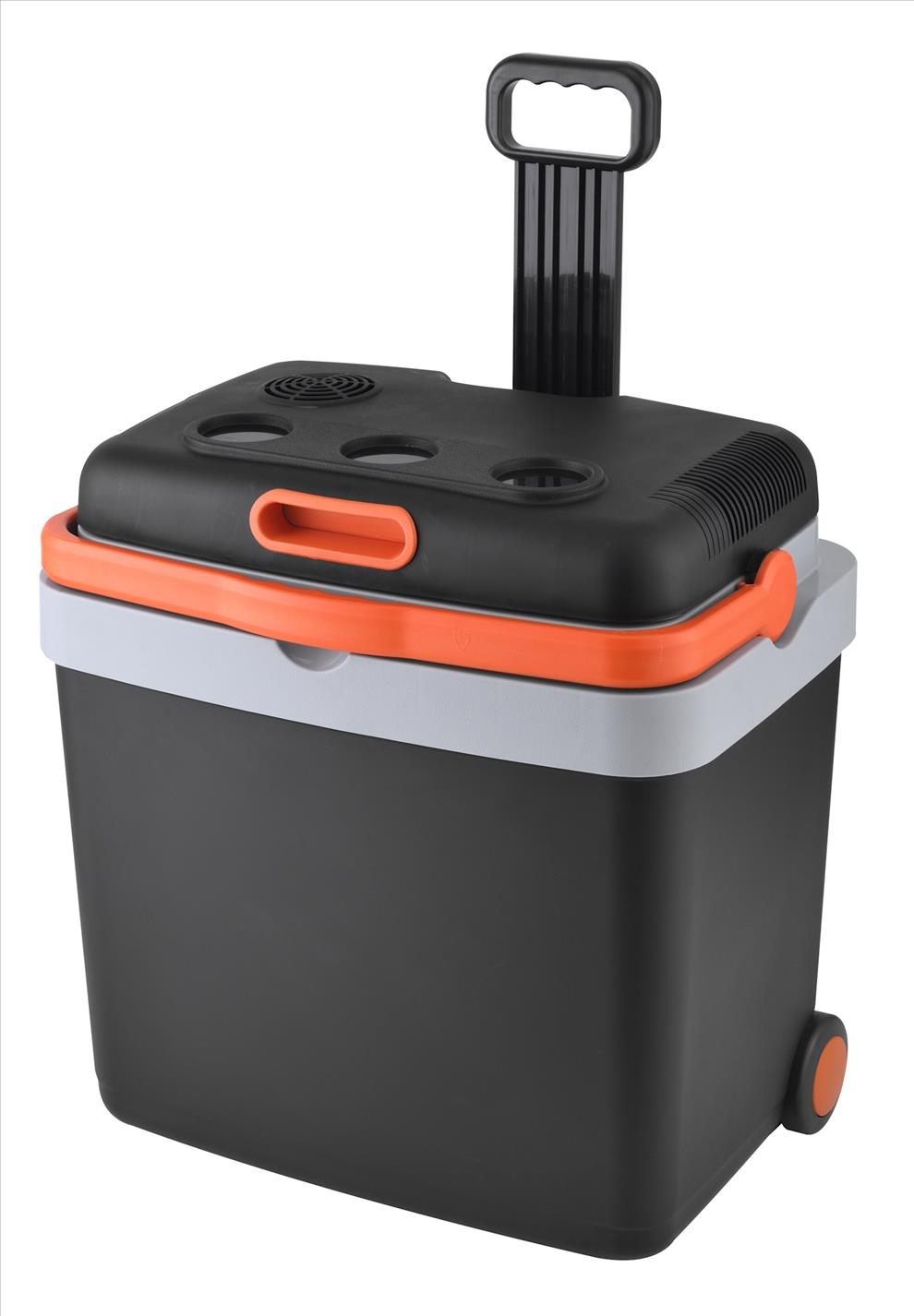 Chladící box rodinné velikosti vybavený kolečky a teleskopickým madlem
