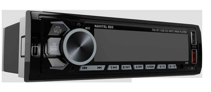 Multifunkční autorádio NAVITEL RD5, FM modul, paměť 18 stanic, BlueTooth, microSD až 256GB, 2xUSB-A, AUX, podpora MP3, WMA, WAV, FLAC, 4x45W, aplikace do mobilu
