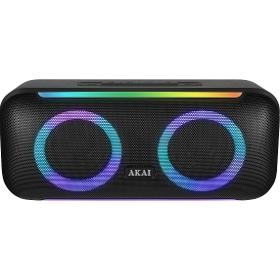Bezdrátový reproduktor. Akai ABTS-70. . Typ ovládání tlačítkový. Frekvenční rozsah 20Hz-20KHz. Výkon 5 W. Celkový výkon (RMS) 5 W. Ovládání hlasitosti. Voděodolný IPX5. . Podporované kodeky a formáty MP3. Typ soustavy aktivní. Světelné efekty. Počet aktivních reproduktorů 2. Počet pasivních reproduktorů 1. Výkon RMS 40 W. Senzory a hardware reproduktor. AUX. Bluetooth. True wireless