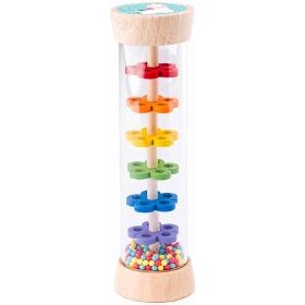 Chrastítko. WOODY Chrastítko Duhový déšť. . Překlápěním válce propadají duhové korálky skrz kaskádu překážek. Chrastí a vytváří pro dítě zábavnou podívanou. . Věk 1+. Rozměry (VxŠxH) 19 x 5,5 x 5,5 cm