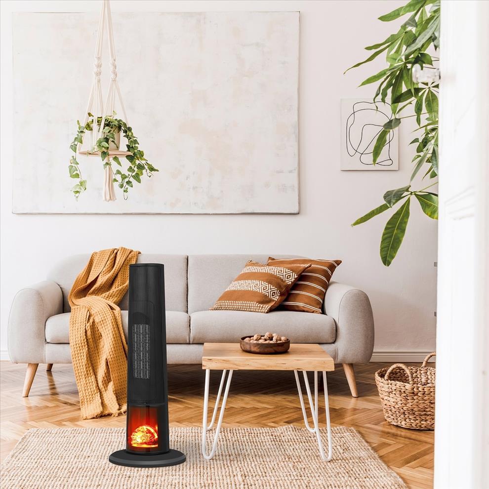 Keramický ohřívač je skvělý způsob, jak se v chladných zimních měsících zahřát a být v pohodě. Má dvě nastavení výkonu, dotykový ovládací panel, dálkový ovladač, 12hodinový časovač, oscilaci a elektrický krb s efektem hořícího polena, který vytváří teplou a romantickou atmosféru. Keramický topný element je bezpečný a efektivní, a bezpečnostní spínač proti převrácení a ochrana proti přehřátí zajišťují bezpečnost.