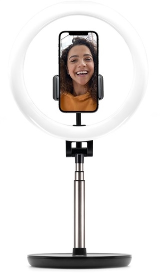 Stativ FIXED LEDRing Lite s kruhovým osvětlením. 120 LED diod, nastavitelný sklon. Na napájecím USB kabelu je dálkové ovládání se 3 režimy teploty a 10 stupni jasu. Kleště pro telefon s šířkou 5 - 8,8 cm a ohebným ramenem.