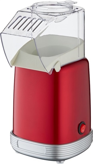 Popkornovač retro v designu padesátých let; rychlá příprava bez oleje a tuku za pomoci horkého vzduchu; originální občerstvení, bez tuku, zdravé, chutné a lehké, mnohem zdravější než připravované na oleji; Příkon: 1200W; Max. příkon 1200 W