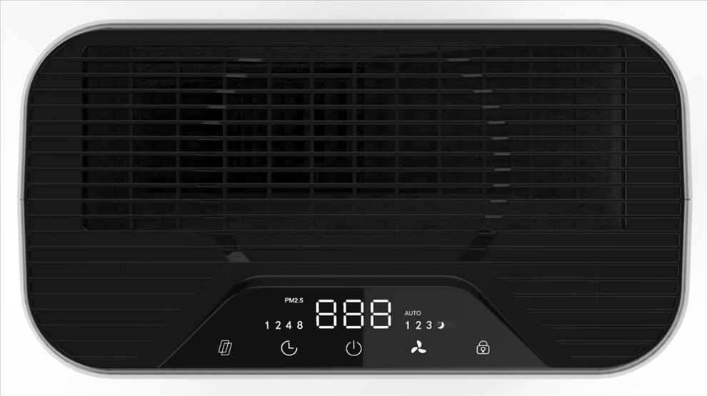 Ovládací panel zobrazuje 3 úrovně znečištění vzduchu (PM 2,5) pomocí 3 barev (zelená – vynikající kvalita vzduchu, oranžová – mírné znečištění, červená – vysoká míra znečištění)