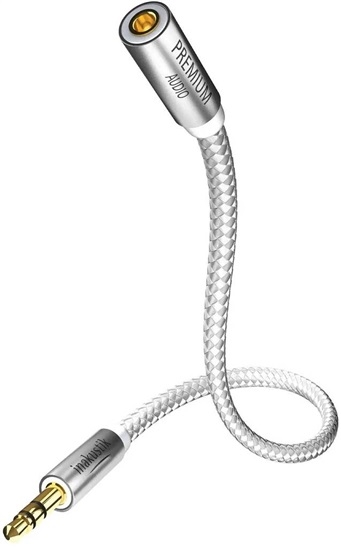Prémiový prodlužovací kabel pro sluchátka, 3.5mm Jack (m) na 3.5mm Jack (f), OFC měděné vodiče, zlacené konektory, v balení také adaptér na 6.3mm Jack, bílo-stříbrné opletení, délka 3m