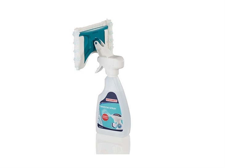 Čistič na okna o objemu 500 ml s rozprašovačem a integrovaným mopem na okna, návlek na mop je vyroben ze speciálního mikrovlákna, které přitahuje a zachycuje nečistoty. Návlek lze prát v pračce bez aviváže.