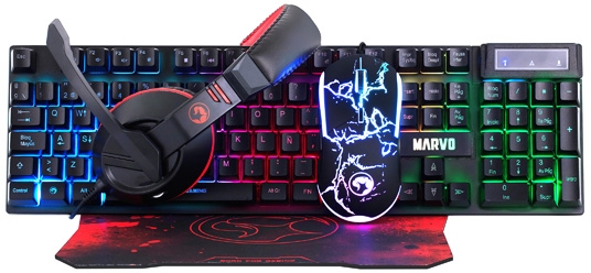 Sada klávesnice,myši,podložky,sluch,US,drát(USB),černá;Multimed.klávesnice;rainbow podsvíc;anti-ghost.pro 19 kláves;Odolná proti polití;Opt.myš;4 možnosti DPI;Počet tlačítek:6;Podsvícení:7barev;Sluch-zvuk stereo;Typ mikrofonu:všesměr;podložka pro vysoce citlivé myši-laser.i opt.myši;proti pocení