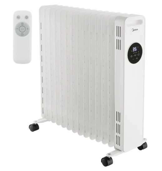 3stupňové nastavení výkonu 1000/1500/2500 W, 13žeber, provozní plocha 21-25m2, digitální termostat, otočná kolečka, rukojeť pro přenášení, navíjení kabelu, ochrana proti převrácení a zamrznutí