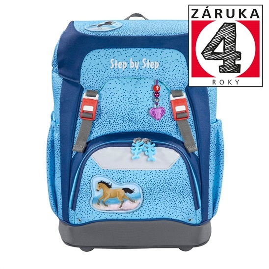 - školní batoh Step by Step Grade je flexibilní batoh, příjemný na nošení a ve sportovním designu - hmotnost batohu je pouze 950 g, vhodný pro děti již od 100 cm výšky dítěte - ekologický batoh, vyrobený ze 100% recyklovaných PET lahví (z 37 PET lahví) - impregnace PFC Free – používáme impregnaci bez škodlivých PFC chemikálií, naše impregnace je šetrná vyrobená na vodní bázi - školní batoh, který se nekácí a perfektně sedí na zádech díky plynulému výškovému nastavení ramenních popruhů - pomocí otočného mechanismu uvnitř batohu, zajišťujete přesné nastavení ramenních popruhů přímo na zádech dítěte od 1. Do 4. třídy - vyměnitelné 3D obrázky – 1 ks na klopě batohu, 1 ks na přední kapse a ozdobná šňůrka na přední straně batohu - ultra lehká ergonomicky tvarovaná záda s měkkým prodyšným polstrováním, konstrukce ze sklolaminátu - polstrované, nastavitelné popruhy na ramena ve tvaru S (nezařezávají se do ramen, dobře a pevně sedí a snadno se s nimi manipuluje) - háčky na popruhu pro zavěšení konců popruhu - dotahovací pásky na ramenním popruhu, slouží k dokonalému přilnutí batohu k zádům dítěte - DOKONALÉ POLSTROVÁNÍ ZAD A VÝŠKOVĚ A DÉLKOVĚ NASTAVITELNÉ POLSTROVANÉ POPRUHY ZARUČUJÍ ZDRAVÝ VÝVOJ ZAD DÍTĚTE, PROTO ŠKOLNÍ AKTOVKY Step by Step ZÍSKALY CERTIFIKÁT AGR - odnímatelný výškově nastavitelný hrudní popruh, značková přezka YKK - odnímatelný bederní pás pro optimální rozložení hmotnosti batohu mezi ramena a bedra a vycentrování batohu doprostřed zad - reflexní plochy na všech viditelných stranách batohu značky ORALITE (zepředu, na bocích a ramenních popruzích), dostatečná bezpečnost v šeru a ve tmě - poutko pro zavěšení batohu - uzávěr na dvě magnetické přezky pro děti snadné otevírání a zavírání batohu - magnetické zavírání je výškově nastavitelné, díky tomu lze zvětšit objem batohu - izolovaná přední kapsa (pro studené nebo teplé jídlo a nápoje) - boční kapsy na láhev s pitím s otvorem v dolní části kapsy. Pokud do kapsy vyteče lahev, tekutina odteče otvorem dříve než se vsákne do hlavní kapsy a poničí učební pomůcky - stabilní dno batohu s nožkami pro lepší stabilitu a ochranu před vlhkem a špínou - možnost objednat pláštěnku - Prostorná hlavní kapsa s vnitřní kapsou, která je určena pro těžší předměty (např. učebnice), zajistí se tak rovnoměrné rozložení hmotnosti - v klopě gumičky pro umístění penálu, zatíží batoh z vrchu a tak chrání záda a zároveň šetří prostor v batohu - objem: 22 l, hmotnost: cca 950 g, nosnost: 7 kg, vnější rozměr: h.20 x š.28 x v.41 cm - PRODLOUŽENÁ ZÁRUKA 4 ROKY