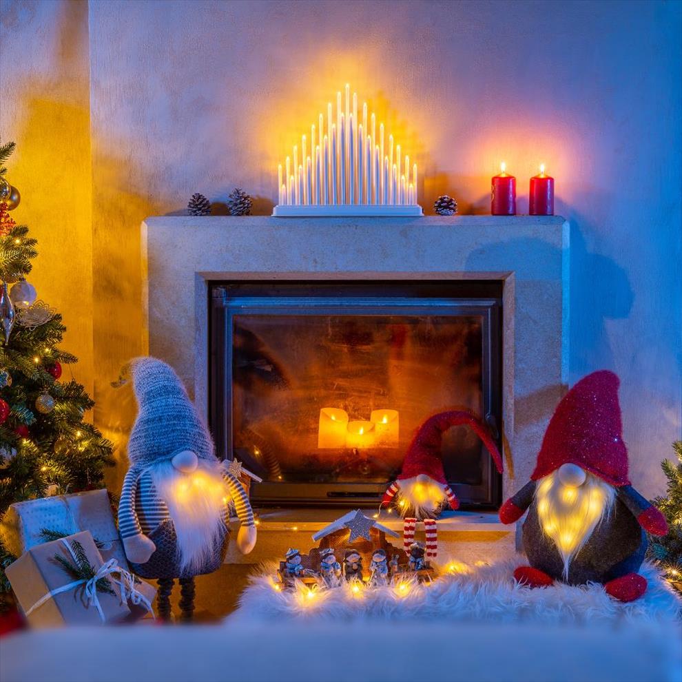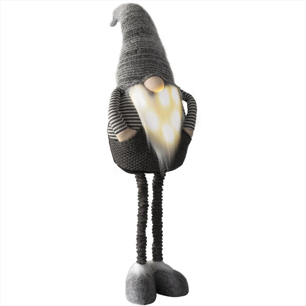 Skřítek na teleskopických nohách s LED světýlkem. Výška 108 cm. Šedé provedení