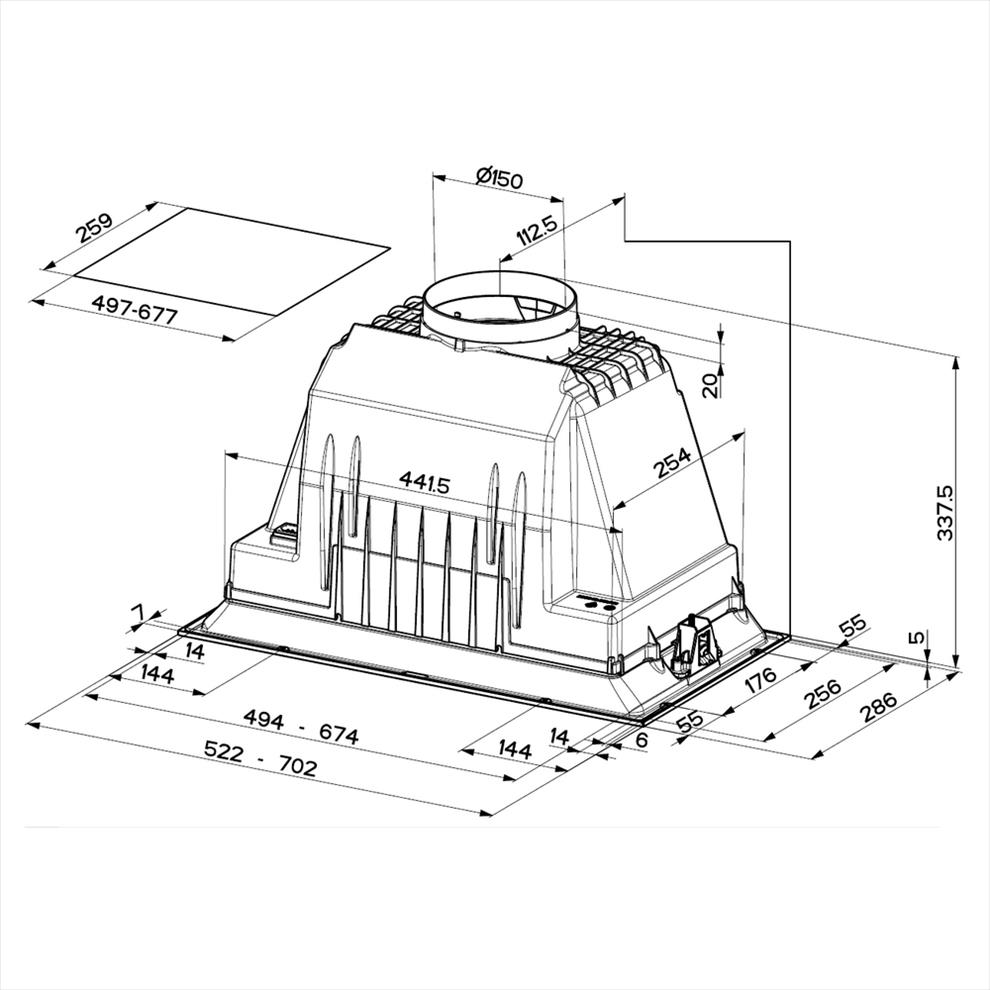 kuchyňská digestoř vhodná pro vestavbu do většiny kuchyňských skříněk, kde působí nenápadně a elegantně.