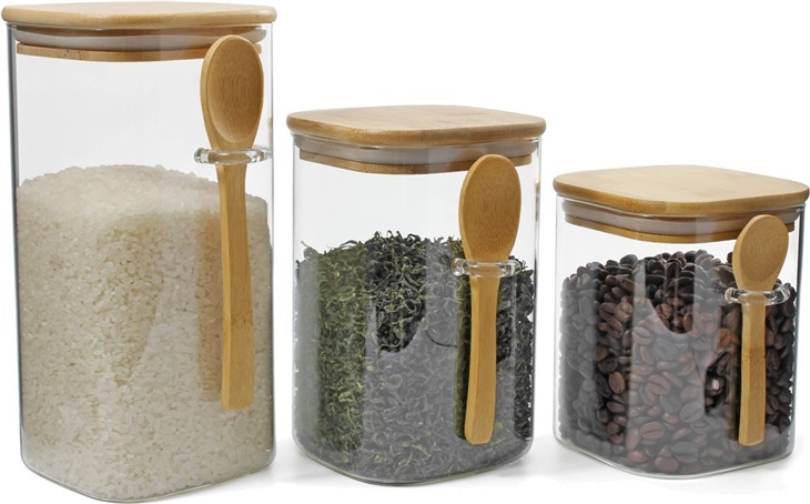 Set tří dóz Bamboo jsou ručně vyrobené z borosilikátového skla spolu s bambusovým víčkem a lžičkou včetně silikonového těsnění jsou vhodné pro skladování těstovin, kávy, čaje, mouky, cukru a soli nebo třeba sušenek, či sladkostí. Praktické ucho sklenice poslouží k uložení bambusové lžičky, která je