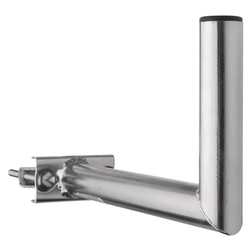 Univerzální držák antén Pro instalaci na stožár. Průměr trubky je 40 mm, výška 150 mm a délka od základny (zdi) je 350 mm. Držák je povrchově upraven galvanickým zinkováním.