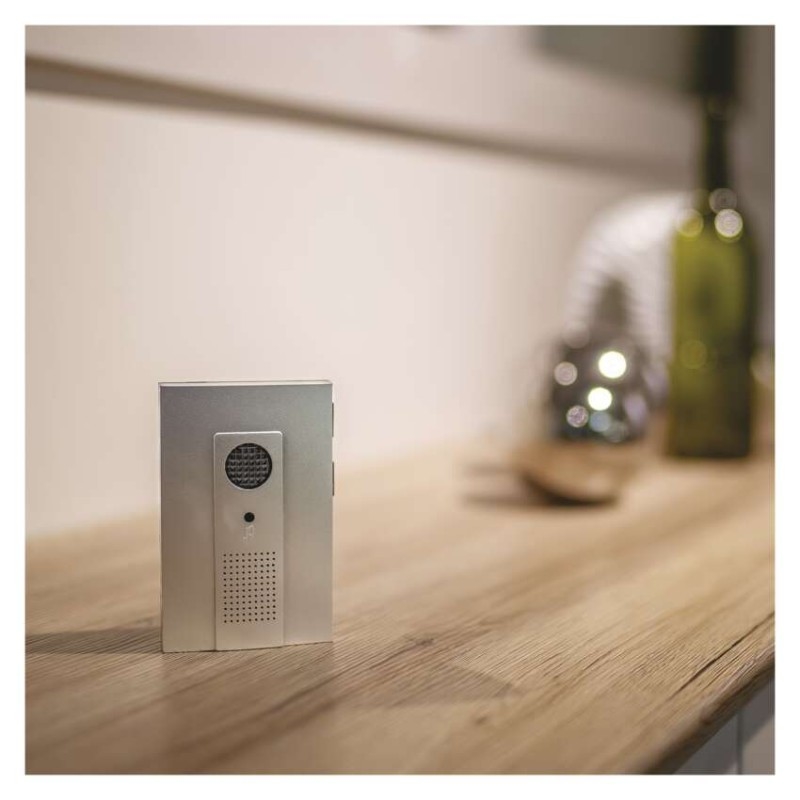 Patříte-li k těm, kterým se běžně stává, že přeslechnou zvonek, pak zpozorněte. Stříbrná základna zvonku i tlačítko jsou totiž vybaveny světelnou signalizací, která vám dá najevo, že na vás někdo zvoní, i když je kolem vás právě hluk. Stejně tak si může být váš host díky optické signalizaci na tlačítku jist, že zvonek spolehlivě funguje.