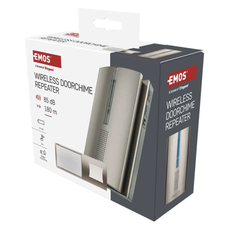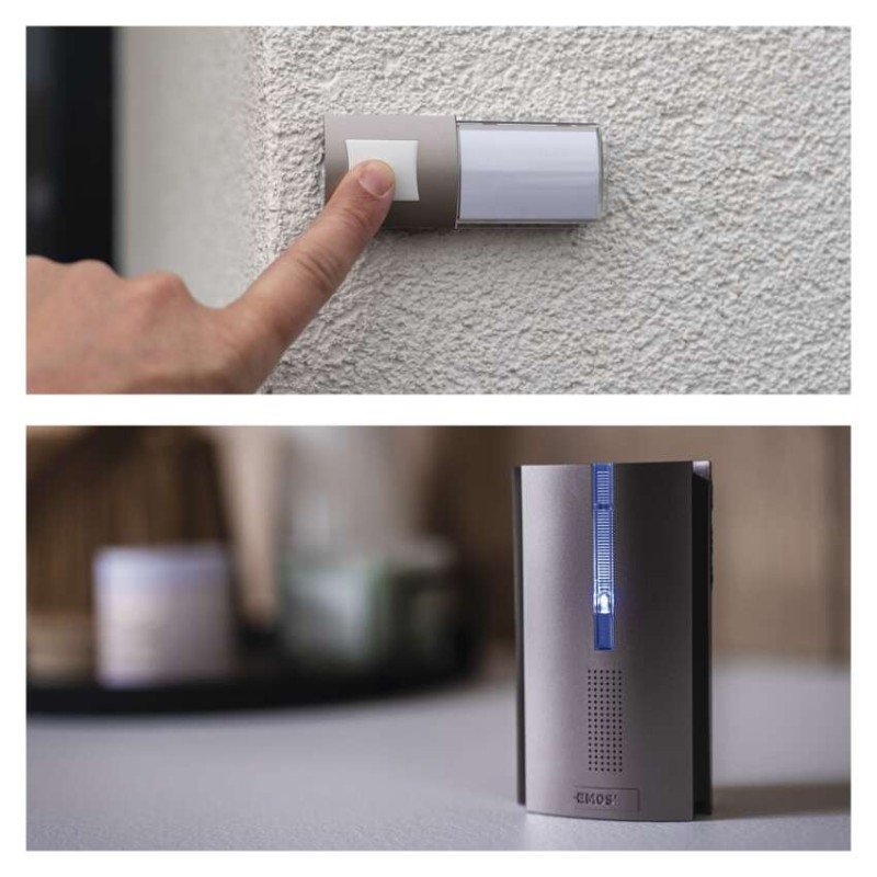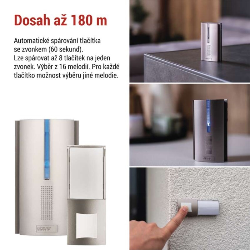 Spolehlivý zvonek s funkcí prodlužovače signálu (repeater), který se hodí nejen k domu, ale i bytu, nebo do kanceláře. Velkou předností tohoto zvonku je jeho bezdrátové provedení a možností prodloužení dosahu tlačítka zvonku.