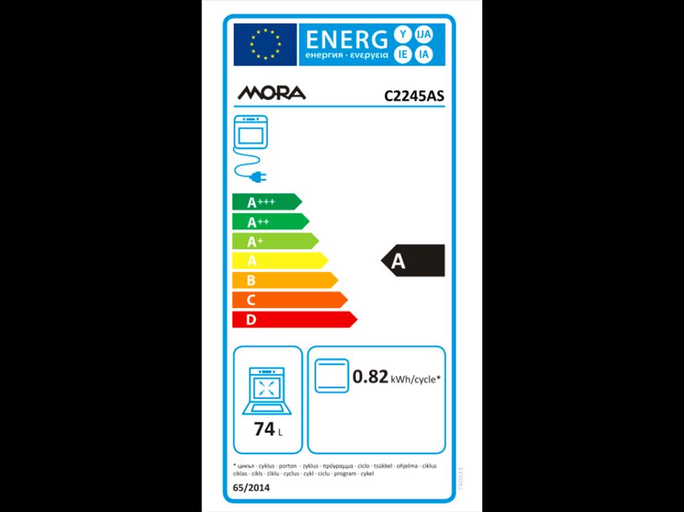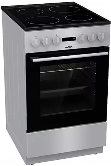 Elektrický sporák s klasickou troubou; sklokeramická deska; 4 HiLight varné zóny; ECO CLEAN – funkce na čištění trouby; regulace teploty v troubě 50–275 °C; osvětlení trouby; objem trouby 74 l; vedení v troubě – drátěná vodítka plechů; chladná dvířka trouby; energetická třída – A