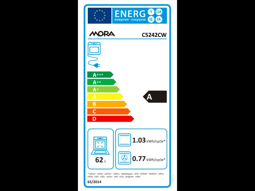 Elektrický sporák Mora v bílém provedení s označením C 5242 CW je spojuje funkce sklokeramické varné desky a multifunkční trouby a svou spotřebou spadá do energeticky velice úsporné třídy A. Varná deska je vyrobena z tepelně odolného materiálu, který vydrží až 100 kg zátěže. Navíc je díky svému zcela rovnému tvaru velice snadno omyvatelný. Deska je vybavena o ukazatel zbytkového tepla – ten světelně signalizuje, že je deska stále horká a nebezpečná na dotek, a tím upozorňuje na možnost popálení nebo vzniku jiných nehod.