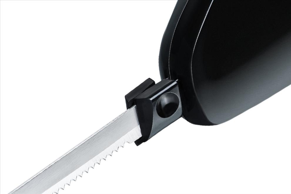 Elektrický nůž značky Rommelsbacher snadno krájí chleba a pečivo, ale také maso a drůbež. Čepele s jemnými zuby jsou ideální pro krájení křehkých pokrmů, jako jsou smetanové dorty a koláče. Výkonný motor a přídavné nože s drsnými zuby umožňují rozřezat zmrazené potraviny na potřebné porce. Díky závěsnému očku může být spotřebič bezpečně uložen a vždy po ruce k vašim potřebám. Dlouhý kabel a obal nožů zajišťují bezpečnou ochranu při provozu. Oba břitové nože lze myt v myčce nádobí.