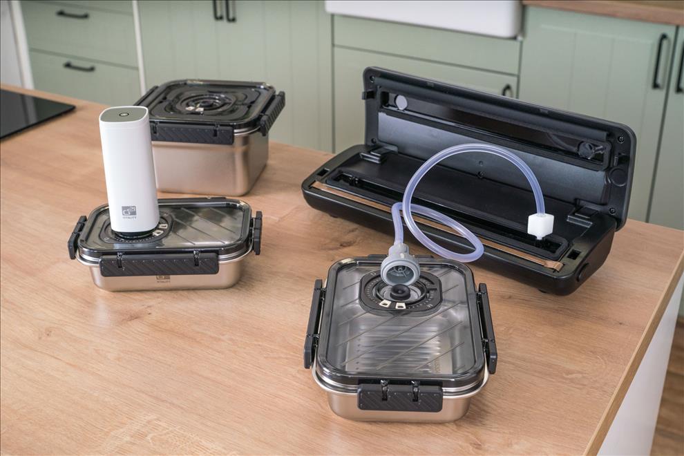 Vakuováním výrazně prodlužujete trvanlivost potravin, zachováváte jejich chuť, vůni i nutriční hodnoty. Nerezová dóza je kompatibilní se všemi vakuovačkami G21. Vakuování minimalizuje kontakt potravin se vzduchem, takže zpomaluje oxidaci a zamezuje růstu bakterií a plísní. Díky tomu si potraviny uchovávají svou přirozenou chuť, texturu i živiny mnohem déle než při běžném skladování.