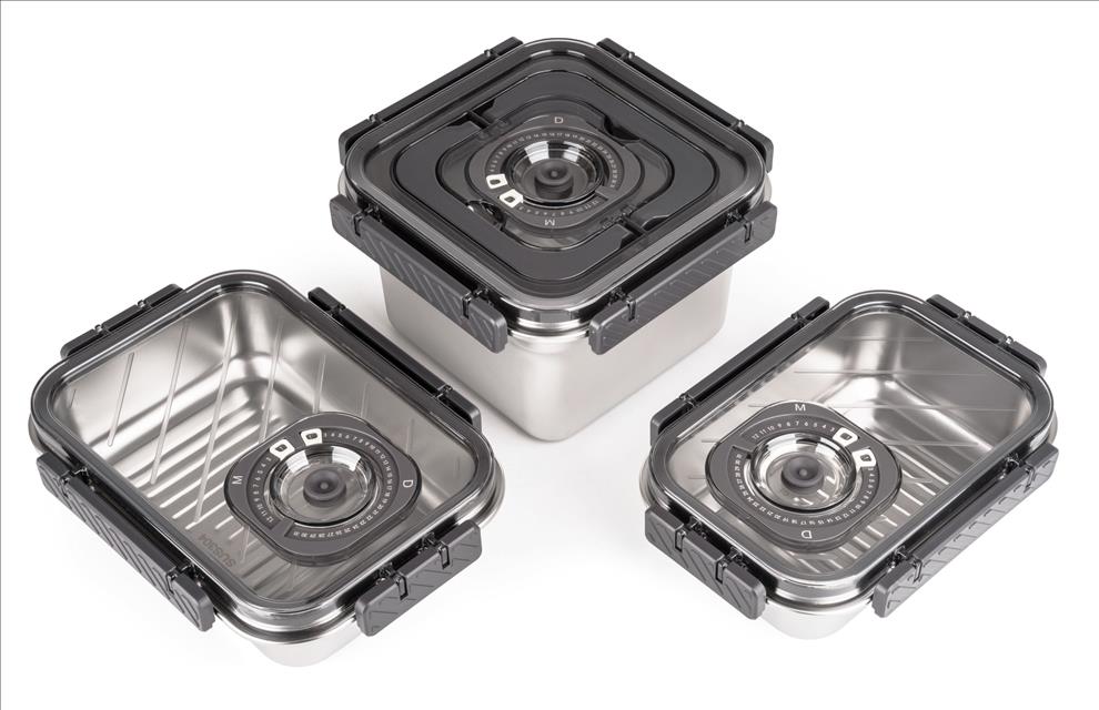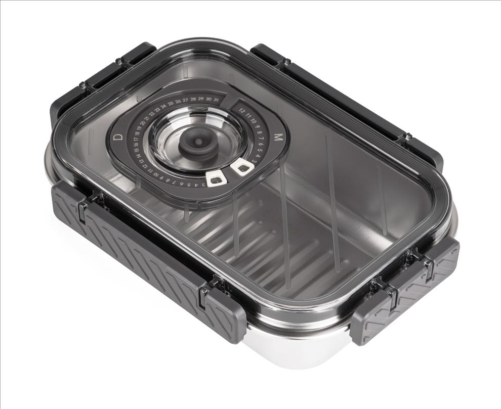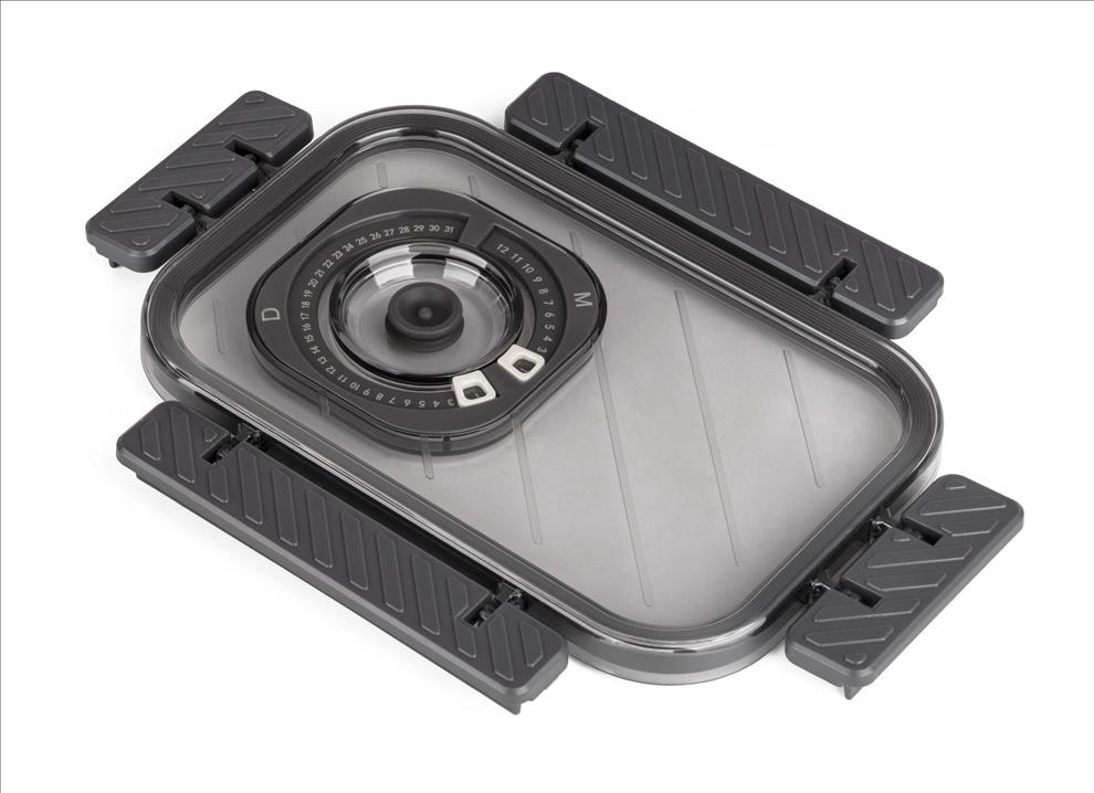 Víko z BPA Free plastu je vybavené vakuovacím ventilem a praktickým nastavitelným ukazatelem data. Budete tak vědět, kdy byly potraviny vakuovány nebo do kdy se mají spotřebovat. Pro uvolnění vakua a otevření dózy stačí jemně zmáčknout ventil uprostřed víka.