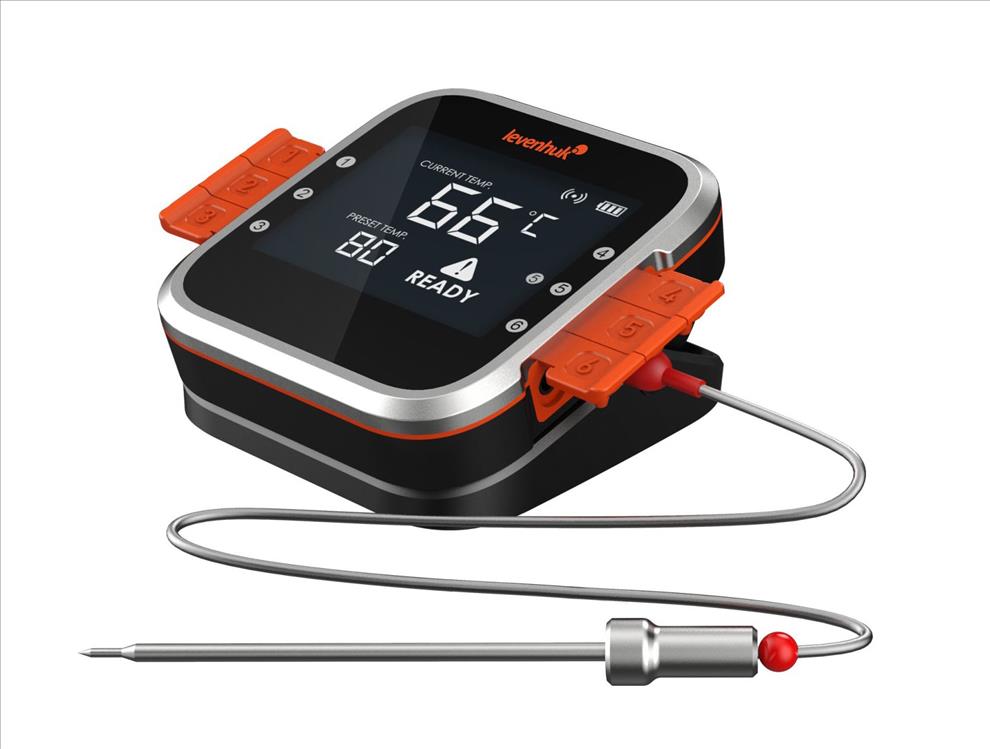 Teploměr Levenhuk Wezzer Grill BT20 umožňuje sledovat teplotu několika pokrmů současně a díky mobilní aplikaci ToGrill máte vše pod kontrolou odkudkoliv. Přednastavené programy pro různé druhy masa pomáhají dosáhnout ideálního stupně propečení a přizpůsobitelná upozornění vás informují o dosažení cílové teploty. Stabilní Bluetooth připojení s dosahem až 60 m vám umožní věnovat se jiným aktivitám, zatímco se jídlo připravuje.
