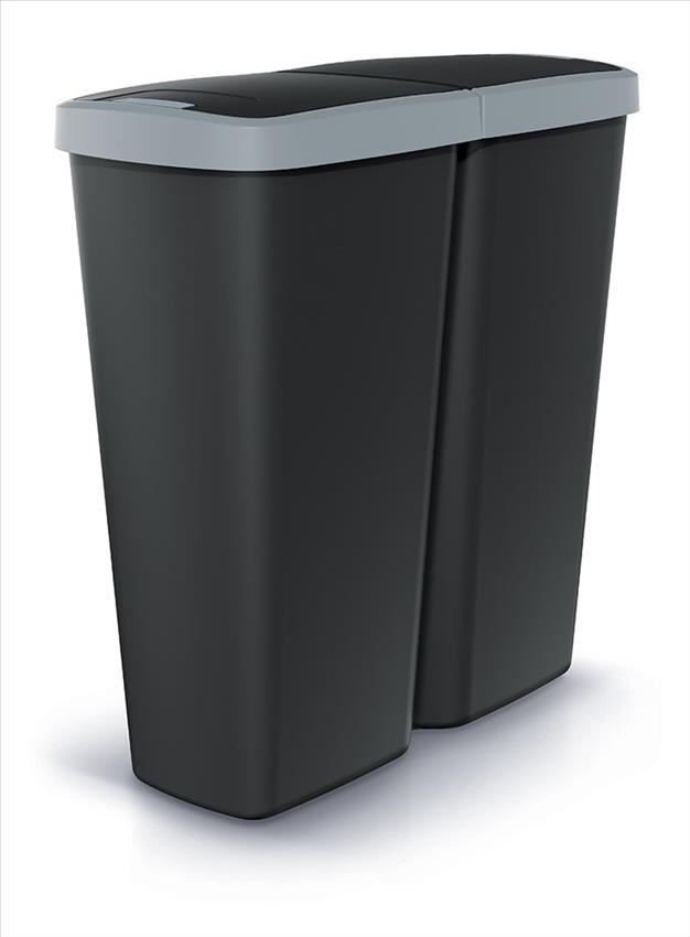 Odpadkový koš o objemu 50 l, jedna velká vnitřní nádoba, dvojité víko s tlačítkovým otevíráním, možnost uchycení 2 odpadkových pytlů pro snadné třídění.