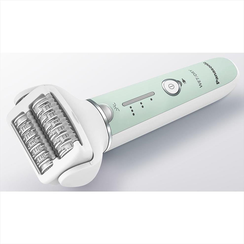 Užijte si pocit hedvábně hladké pokožky. Epilátor Panasonic ES-EY70AG503 je skvělý doplněk pro každou moderní ženu, se kterým dosáhnete dokonalých výsledků. Rychle, jednoduše a profesionálně. Epilátor si efektivně poradí se všemi chloupky. Výkyvná dvoukotoučová hlava při každém pohybu pokryje ještě větší oblast, 60 pinzet spolehlivě zachytí chloupky všech délek. A to od těch nejmenších s velikostí 0,5 mm. Epilátor nabízí 3 nastavení rychlosti, tlakový senzor pro bezpečnou proceduru a integrované osvětlení, takže už žádný chloupek nepřehlédnete. Voděodolné provedení vám epilaci zpříjemní, možnost použití ve sprše nebo v teplé koupeli totiž dokáže zmírnit nepříjemné pocity. Tento dokonalý společník pro péči o pokožku je dodáván s několika nástavci, takže si můžete dopřát kompletní péči o celé tělo.