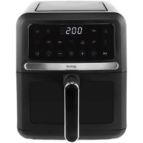 Horkovzdušná fritéza. HUSLOG HUS1032. . 10 přednastavených programů. Dotykový panel s displejem. Podsvícené piktogramy programů. Vlastní nastavení teploty a doby provozu. Dvířka s prostorným průhledem. . Maximální regulace teploty v rozmezí 40–200 °C. Nastavení času od 1 do 720 minut. Součástí je velký a odolný koš a rošt. . Výkon 1500 W. LED displej. Objem 5 litrů. . Barva černá