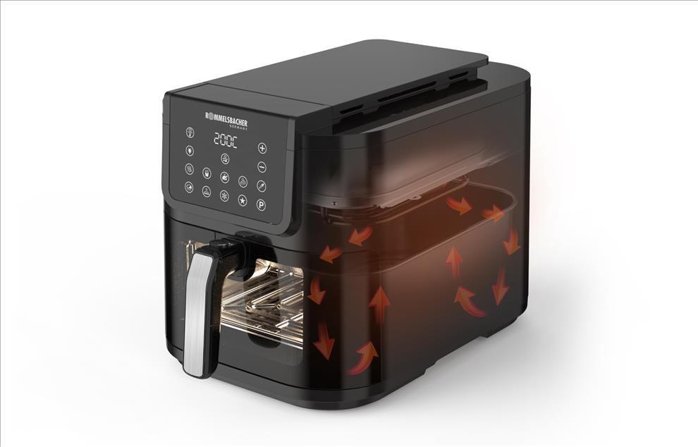 Zdravá alternativa k fritéze a troubě: pokud chcete smažit nebo péct, můžete k tomu použít Rommelsbacher FRH 1700. Tajemstvím je technologie Hot Air Convection, která obklopuje pokrm rovnoměrně rozloženým vzduchem namísto oleje. Nádoba s exkluzivním designem pro optimální rozložení tepla a efektivnější tepelnou úpravu pokrmu. Může se fritovat rovnoměrně a rychle, s malým množstvím oleje (-80 %) nebo zcela bez oleje. Nižší spotřeba oleje, žádný zápach v kuchyni. Jednoduché čištění. Časovač. 10 přednastavených programů. Dotykový digitální displej. Ve fritéze si budete moct připravit celou řadu pokrmů, například maso, ryby, krevety, smažené brambory či hranolky.