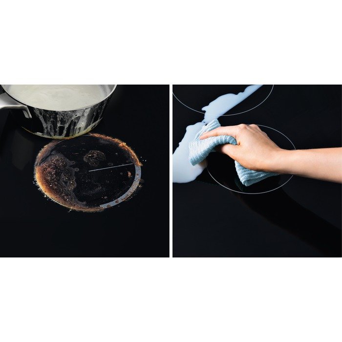 Indukční technologie zaručí, že okraj varných zón zůstává na dotyk chladný, takže i když vaříte při velmi vysokých teplotách, můžete rozlité jídlo odstranit snadno a bezpečně hned, jakmile se něco takového stane a nehrozí vám bolestivé popálení.