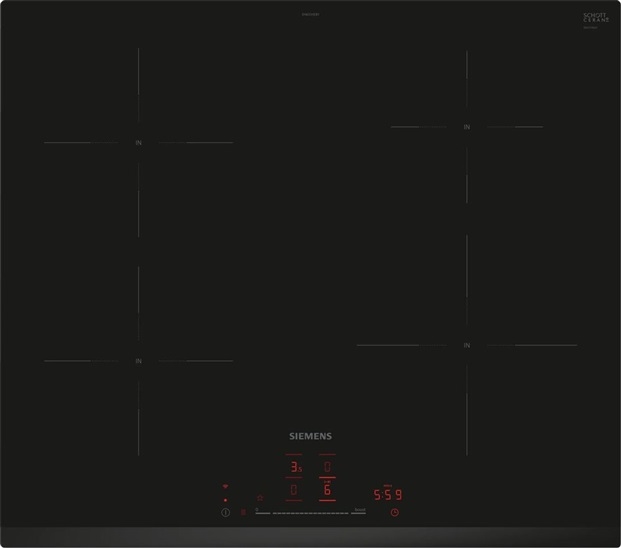 indukční varná deska, 60 cm, 4 indukční varné zóny, ovládání touchSlider+, Intelligent hood automatic, powerBoost, dětská pojistka, 2stupňový ukazatel zbytkového tepla pro každou varnou zónu, příkon: 7,4 kW, přední fazeta