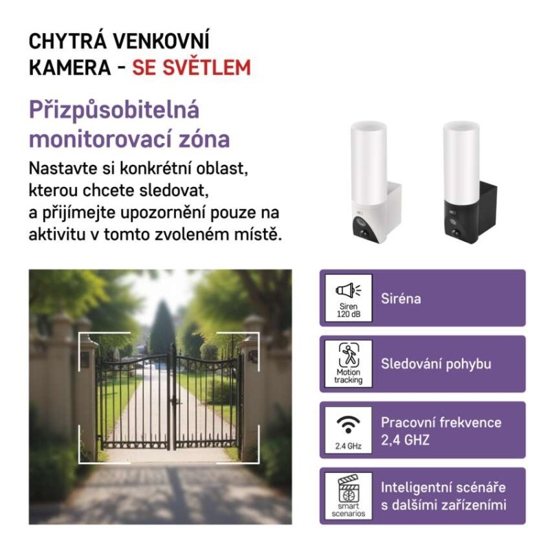 Světlo na kameře můžete ovládat prostřednictvím aplikace, PIR čidla, které zajistí automatické zapnutí/vypnutí osvětlení při zaznamenaném pohybu, časovačem, případně rozšířit ovládání světelného zdroje pomocí externího chytrého vypínače.