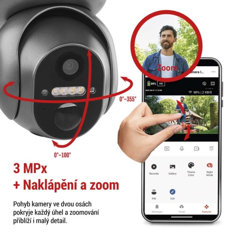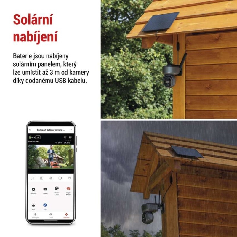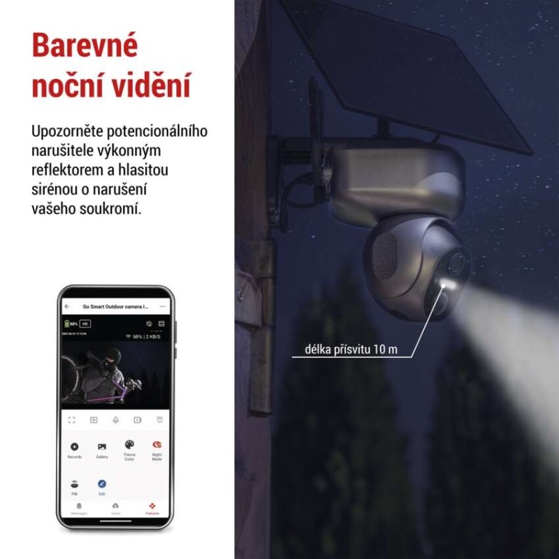 Venkovní chytrá kamera s 4G/LTE připojením nabízí revoluční kombinaci funkcí, které zajistí bezpečnost a umožňují flexibilitu v umístění. Díky připojení přes mobilní síť je možné monitorovat vybranou oblast kdekoliv, kde nemáte Wi-Fi připojení, ale je zde pokrytí mobilním signálem, jako je např. chalupa u lesa, včelíny nebo odlehlé objekty. Mějte tak svůj majetek stále pod kontrolou, ať už jste kdekoliv. Díky notifikacím na vaše mobilní zařízení můžete reagovat na každou událost.