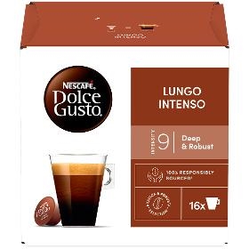 Kapsle Dolce Gusto. Nescafé Dolce Gusto Lungo Intenso 16 ks. . Intenzita 9. Vychutnejte si toto lungo, které v sobě zachycuje veškerou intenzitu Brazílie a Vietnamu. Vydrží vám déle než espresso a má o něco větší říz než naše běžné Lungo, ale sdílí jeho klasickou chuť. Objevte intenzivní směs silné arabiky z Brazílie a výrazné robusty z Vietnamu. . Pro kávovary na kapsle Dolce Gusto