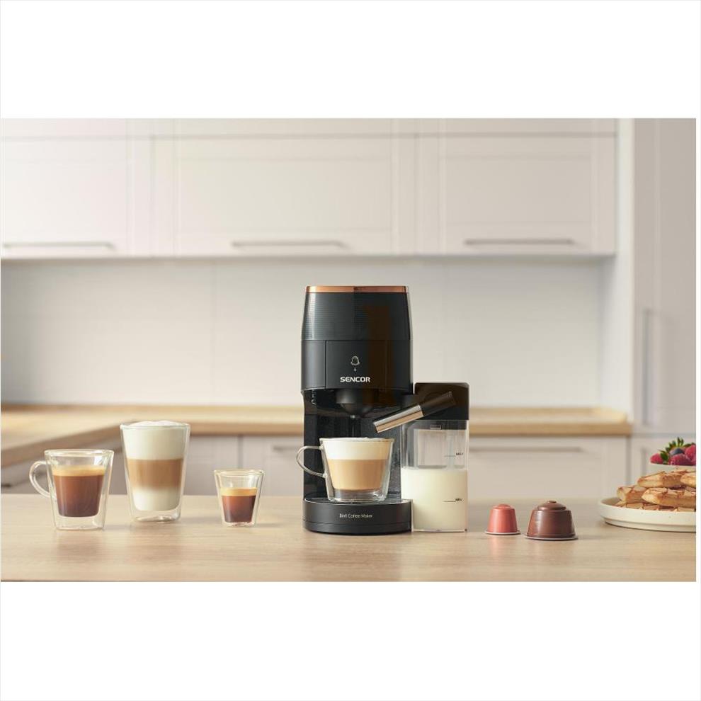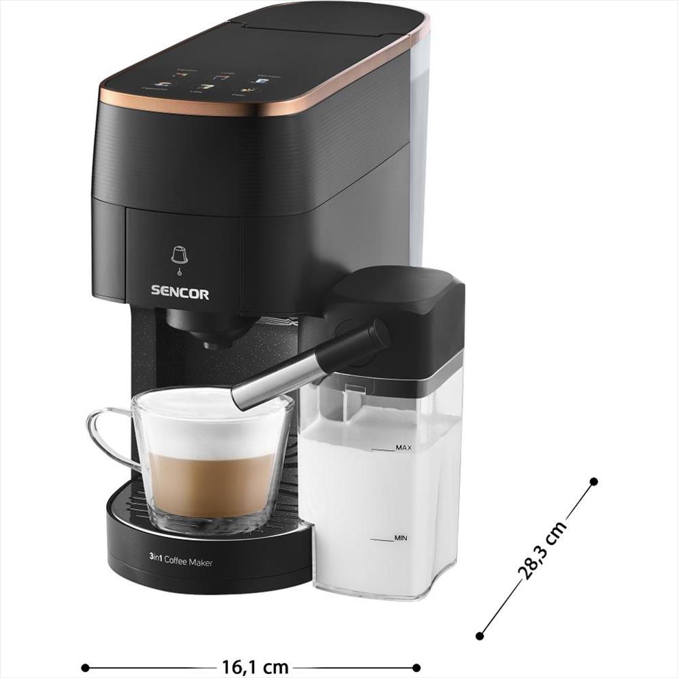 Připravte si kávu jako z vaší oblíbené kavárny, kdykoliv na ni dostanete chuť. Multikapslový espresso kávovar 3 v 1 Sencor SCC 3000BK MARCO POLO lze použít jak s kapslemi (NESCAFÉ Dolce Gusto, NESPRESSO), tak i mletou zrnkovou kávou. Vzhledem k tomu se jedná o multifunkčního pomocníka do domácnosti. Tlak 19 barů se postará o výjimečné chuťový zážitek. Součástí je napěňovač mléka, takže si i mléčné nápoje vychutnáte jedním stiskem. Nechybí ani funkce automatického proplachu, která udrží důležité části kávovaru v čistotě.