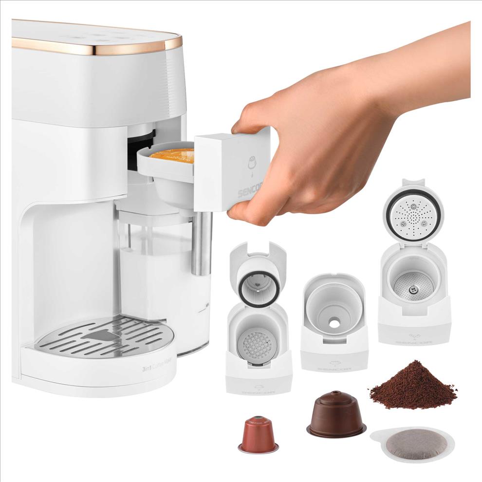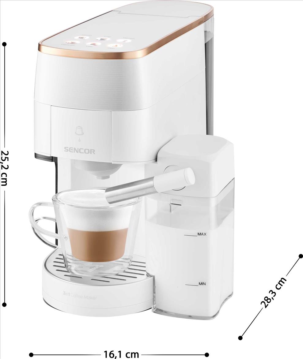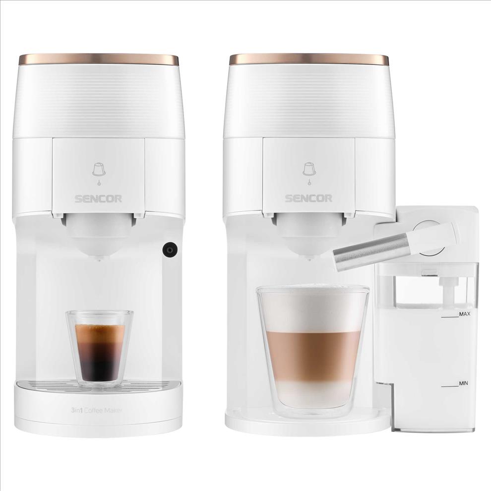 Objevte nekonečné možnosti v přípravě kávy s multikapslovým Espresso kávovarem Sencor SCC 3000BK, který vám připraví lahodnou kávu snadno, rychle a kvalitně. Podle vašich preferencí si můžete vybírat ze široké nabídky kapslové kávy Nespresso® Original*, NESCAFÉ® Dolce Gusto®* anebo mleté zrnkové kávy jakékoliv značky. Díky barevnému displeji si lehce zvolíte svůj oblíbený nápoj jenom jedním dotykem. Za profesionální kvalitou stojí výkonné čerpadlo s tlakem 19 barů a systém ohřevu vody Thermoblock. Kávovar je vybaven nádržkou na mléko pro automatické napěnění mléka a snadným čištěním s automatickým proplachem. Pro jeho kompaktní rozměry si ho můžete pořídit i do menších bytů.