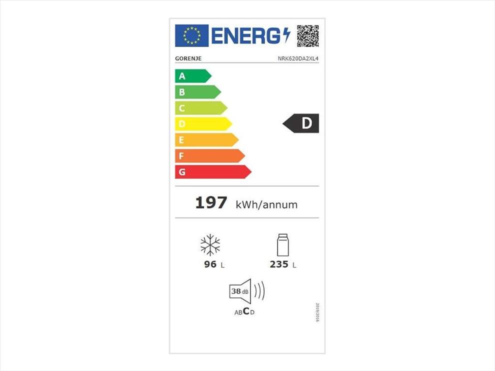 Kombinovaná chladnička, Energetická třída D, Objem chladničky: 235 l, Objem mrazničky: 96 l, Roční spotřeba energie: 197 kWh, Maximální hlučnost: 38 dB, Smart ovládání mobilem: Ne, Šířka: 60 cm, Výška: 200 cm