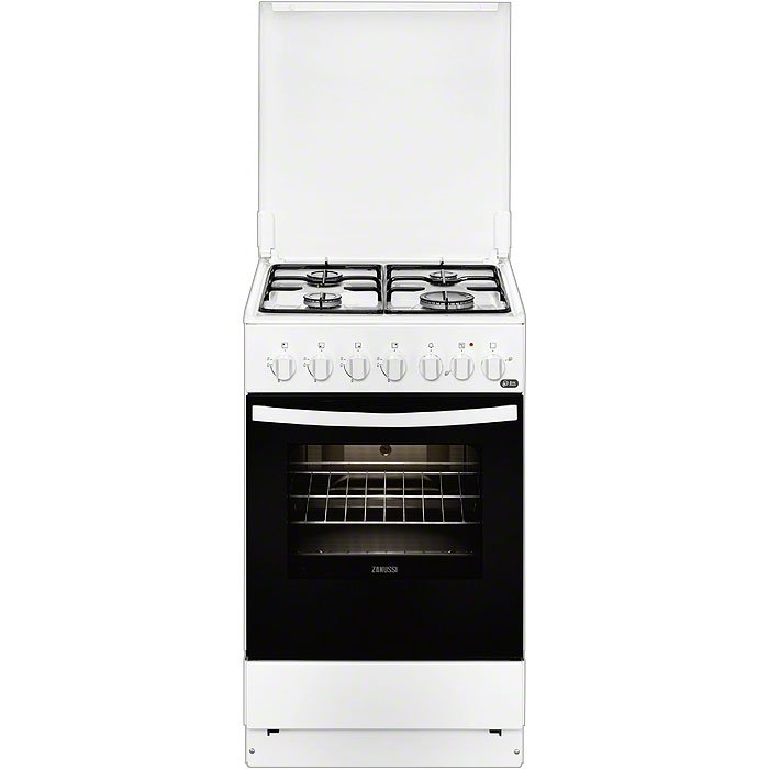 Kombinovaný sporák Zanussi v energetické třídě A se 4 jištěnými plynovými hořáky. Sporák disponuje plechovým víkem a čtyřmi funkcemi ohřevu.