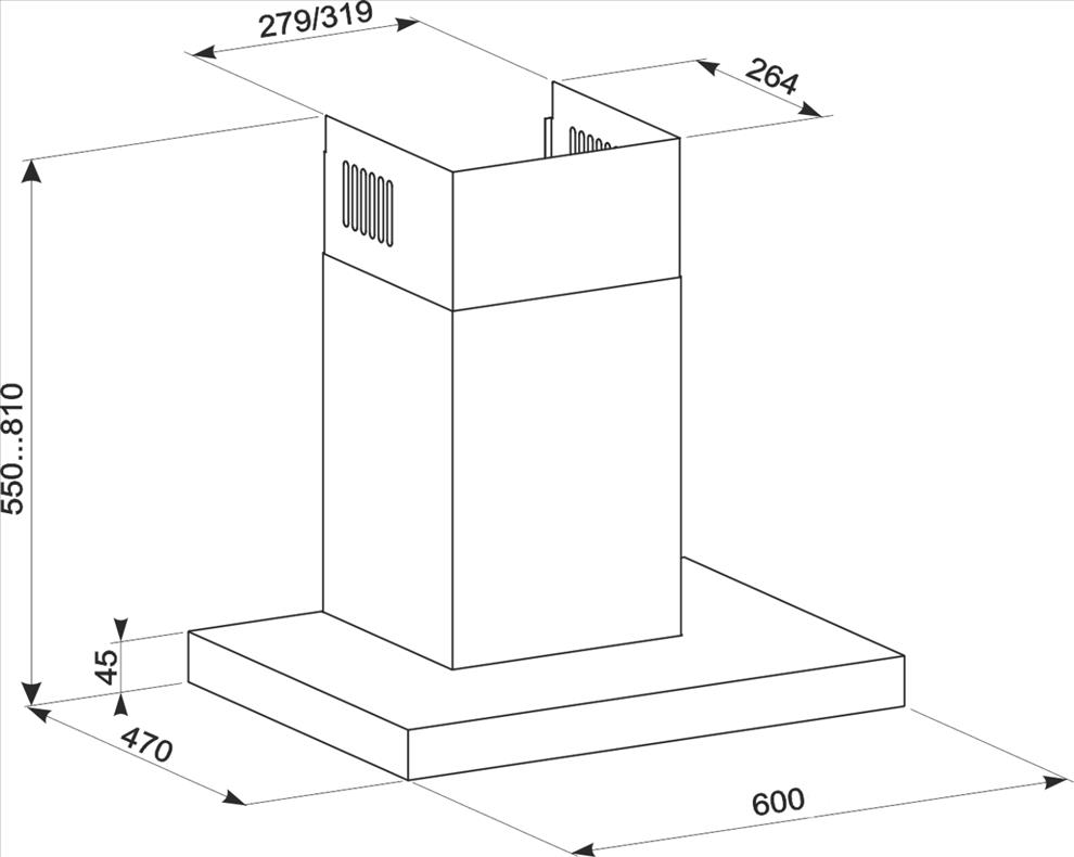 3 volitelné stupně odsávání - velký výkon 302 - 632 m3/h - snadno vyčistí vzduch v kuchyni od mastnoty a zápachů, díky tomu je ideální pro velké prostory moderních kuchyní