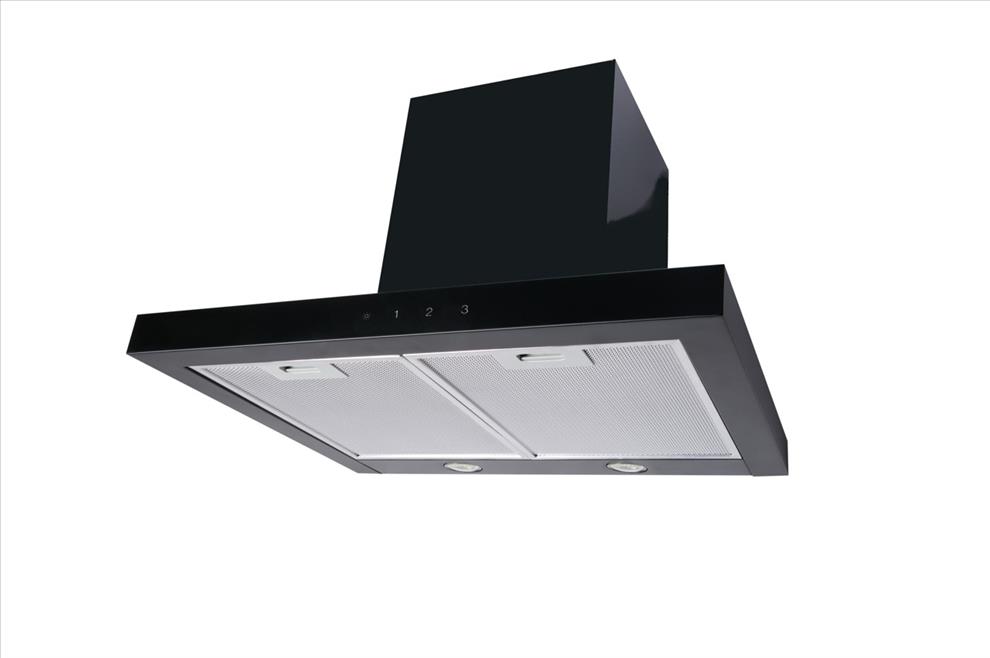 Moderní komínový odsavač par Guzzanti GZ 696B v černém provedení ve tvaru T