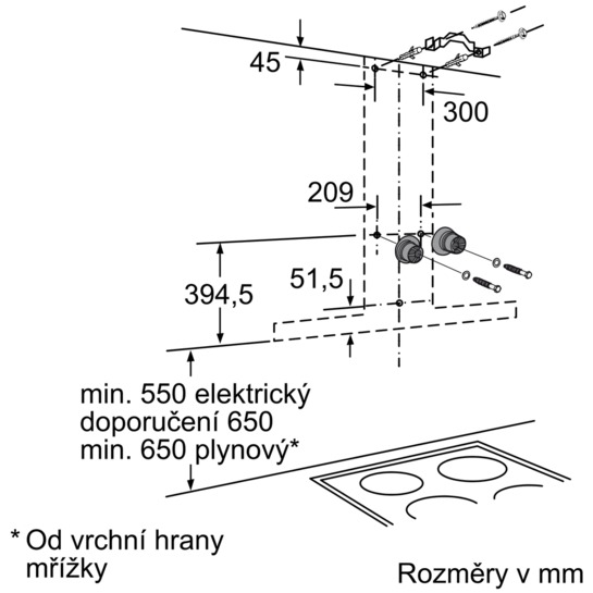 • rozměry spotřebiče pro odvětrávání (VxŠxH): 628-954 x 900 x 500 mm