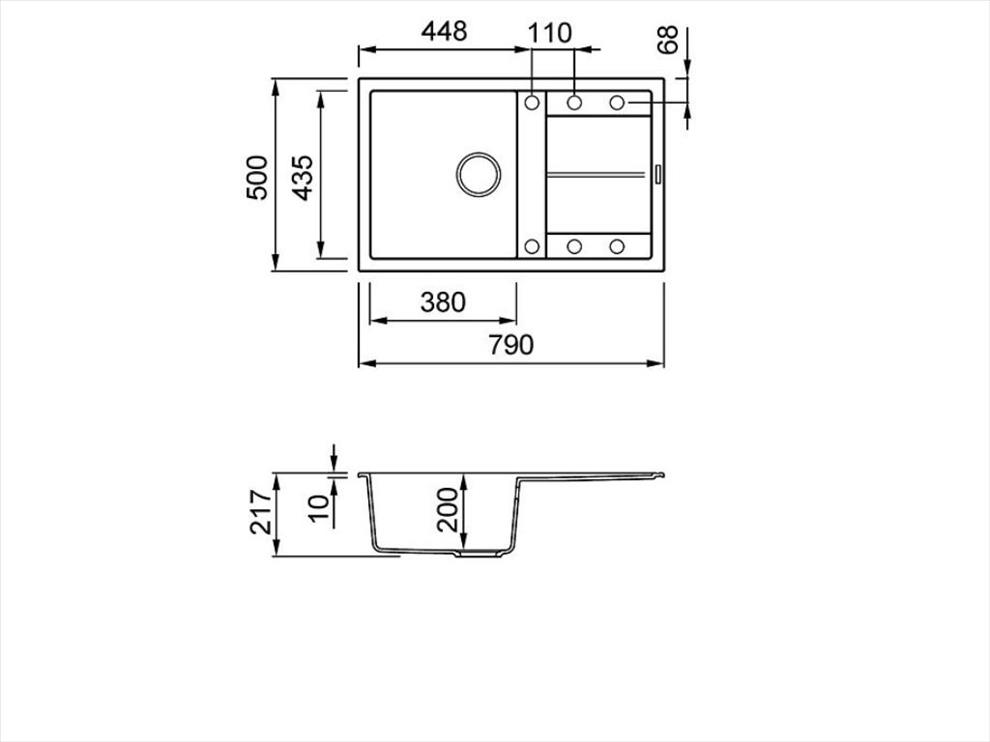Integrovaná oblast pro příslušenství v odkapávači, vybavená předvrtanými otvory, které vám umožňují instalovat doplňky: excentrické ovládání odpadu, dřezovou baterii s vytahovací sprchou a dávkovač saponátu.