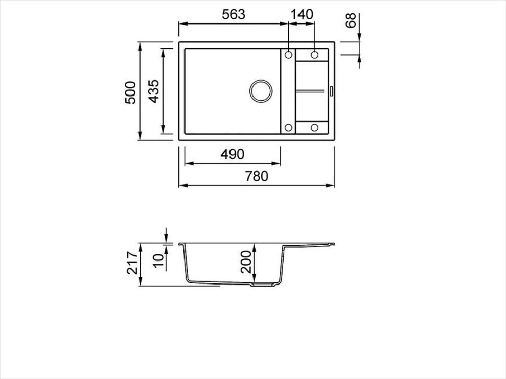Integrovaná oblast pro příslušenství v odkapávači, vybavená předvrtanými otvory, které vám umožňují instalovat doplňky: excentrické ovládání odpadu, dřezovou baterii s vytahovací sprchou a dávkovač saponátu.