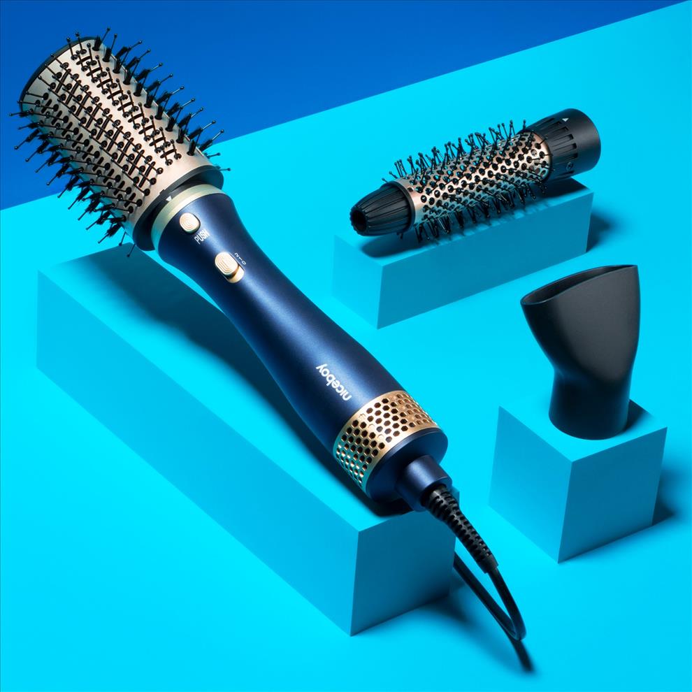 Rozluč se s polámanýma a nevýraznýma vlasama! Kulmofén Niceboy AirBlow jsou hned tři pomocníci v jednom: fén, kulma i kartáč. Motor o 700 wattech vlasy během chvilky vysuší a keramický povrch je upraví do tvaru, který chceš.