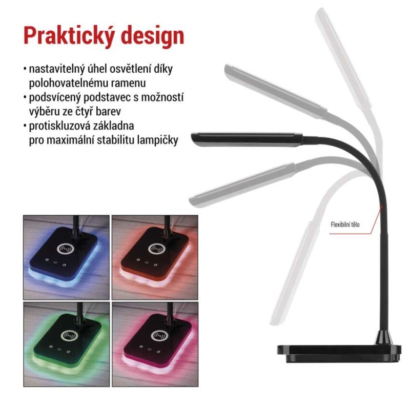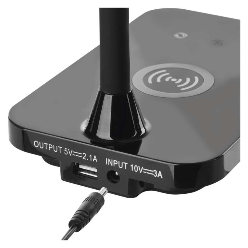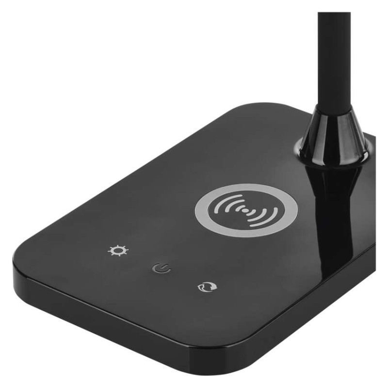 barva: černá|barva světla: teplá/neutrální/studená bílá|činitel stárnutí: 0,96|čip LED: SMD|délka přívodního kabelu: neuvádí se|energetická třída: neuvádí se|energetická třída (od 1.9.2021): neuvádí se|index podání barev (CRI): Ra > 90|integrovaná nabíjecí baterie: ne|krytí: IP20|materiál: ABS plast|max. výkon: 5,5 W|napájecí zdroj: neuvádí se|napájecí zdroj součástí balení: ano|napětí: 220–240 V|obsah rtuti: neuvádí se|patice (uchycení žárovky): neuvádí se|počet LED: neuvádí se|počet spínacích cyklů: neuvádí se|příkon: 5,5 W|prodejní obal: 1 ks, krabice|rozměr: 350 mm|rychlost náběhu na 100 %: neuvádí se|stmívání: ano|světelný tok: 300 lm|teplota chromatičnosti: 2 700–4 500 K|typ napájení: síť|účiník: neuvádí se|USB port: ano + bezdrátové nabíjení|životnost: neuvádí se